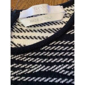 An absolutely stunning dress from Boss for Hugo Boss. Made in Italy. Flattering, form fitting sheath dress in black and white. Ponte knit stretch. Quality! No lining. Please check my measurements carefully because this is an European medium.