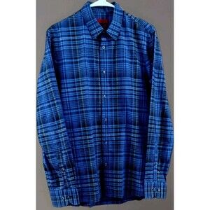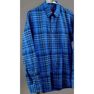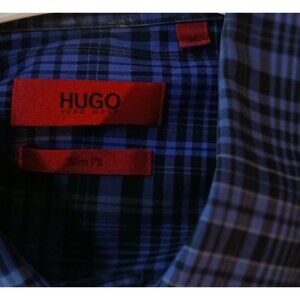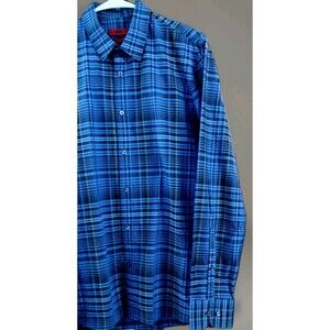 Hugo Boss Red Men’s M Slim Fit Blue Plaid Button Front Shirt Long Sleeve EUC