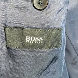 This Hugo Boss sport coat in a sophisticated blue hue is crafted for a refined look. Its structured shoulders and clean lines make it a versatile addition to any wardrobe. Ideal for both professional and semi-formal occasions, this blazer embodies timeless elegance.