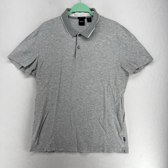 Hugo Boss polo, regular fit cotton polo, gray men’s shirt, stylish casual polo, men’s size L, Hugo Boss fashion, comfortable cotton polo, men’s casual wear, classic men’s polo, soft cotton shirt, men’s stylish polo, Hugo Boss men’s clothing, men’s everyday wear, gray polo top, regular fit shirt, Hugo Boss casual top, men’s new arrivals, stylish casual polo, comfortable men’s fashion