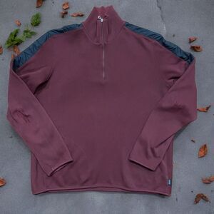 Hugo Boss Regular Fit 1/4 Zip Casual Burgundy Black Collar Sweatshirt Men's XL