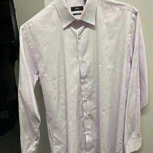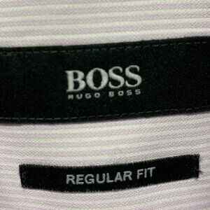 Hugo Boss Regular Fit Dress Shirt Size 16/34-35, lavender striped pattern.