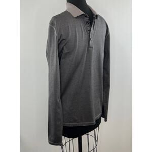 Hugo Boss Regular Fit Men Long Sleeve Dark Gray Polo Shirt Casual Dress Medium M