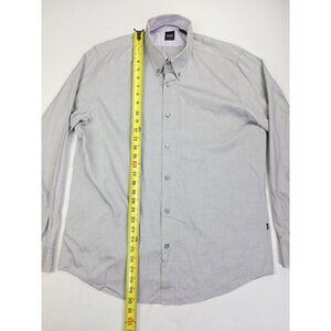 Hugo Boss Regular Fit Size Large Mens Gray Embroidered Chest Logo Button Down