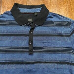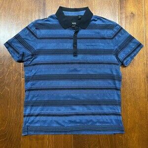 Hugo Boss Regular Fit Striped Blue Black Polo Shirt Cotton Blend Men's Size Small