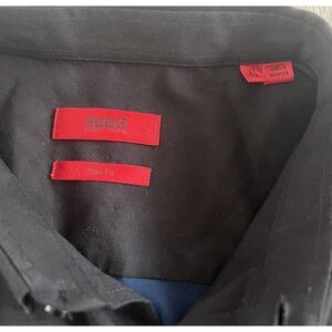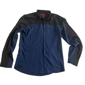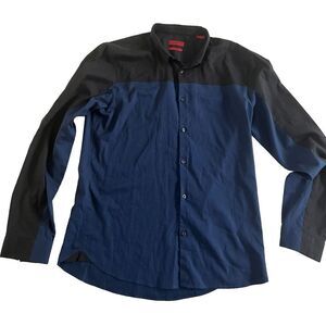 Hugo Boss Retro Color Block Long Sleeve‎ Dress Shirt XL Slim Fit Black & Blue