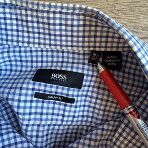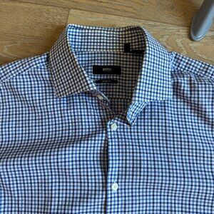 Hugo Boss Sharp Fit 16.5 16 1/2 Blue Plaid Dress Shirt 42 Men's 32/33