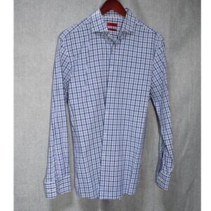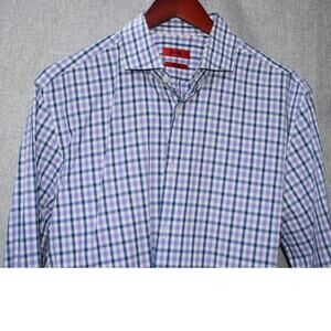 Hugo Boss Sharp Fit Purple Blue Check Button-Up Shirt Size 16.5 32/33