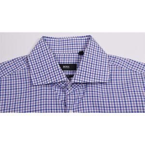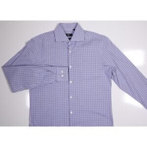 Hugo Boss Sharp Fit Purple Blue Gingham Check Dress Shirt 15-34/35