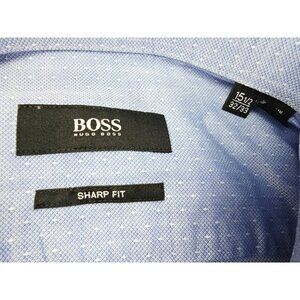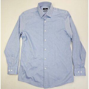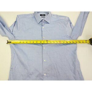 Hugo Boss Sharp Fit Tessitura Monti 15.5 32-33 Mens Blue White Polka Dot Pattern