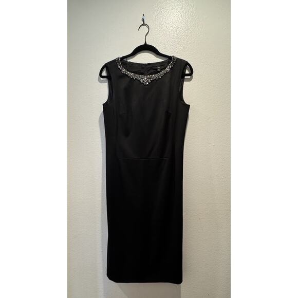 Hugo Boss Sheath Dress Women’s Size 8 Embellished Neck Black Wool Blend Classic