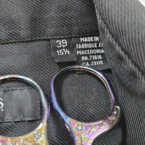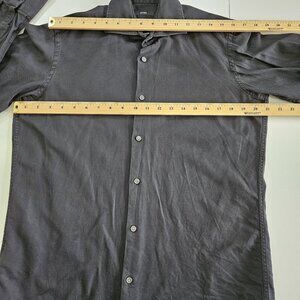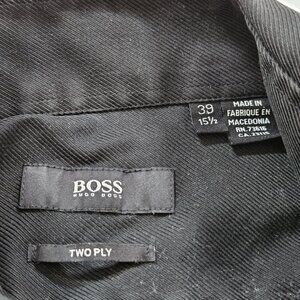 Hugo Boss Shirt Mens 15 1/2 Black LS Button Up Two Ply Cotton Rounded Hem Twill