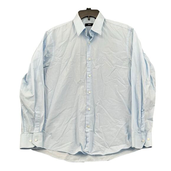 Hugo Boss Shirt Mens 16 Blue Brady Button Up 100% Cotton Work Office Preppy
