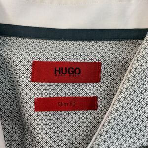 Hugo Boss Shirt Mens 16 SLIM Grizzly Gray White Cotton Button Up Flip Cuff Dress
