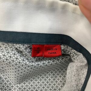 HUGO BOSS SHIRT MENS 16 SLIM GRIZZLY GRAY WHITE COTTON BUTTON UP FLIP CUFF DRESS