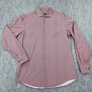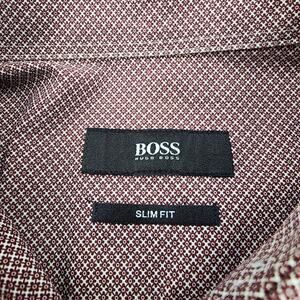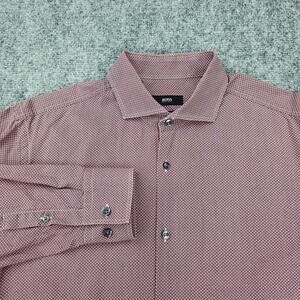 Hugo Boss Shirt Mens 16.5 Large Red Pattern Slim Fit Canclini Cotton Dress