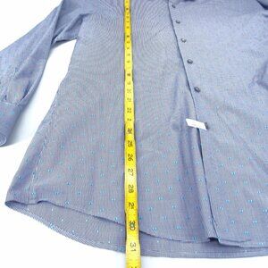 Hugo Boss Shirt Mens 41/16 Blue Dots Button Long Sleeve Cotton Textured