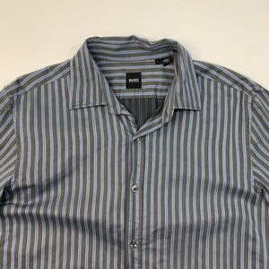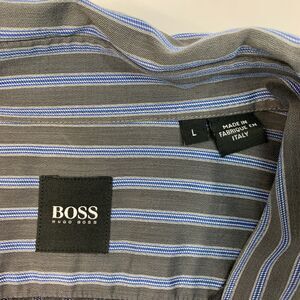 HUGO BOSS SHIRT MENS L LARGE GREY STRIPED COTTON LONG SLEEVE SPREAD COLLAR DRESS