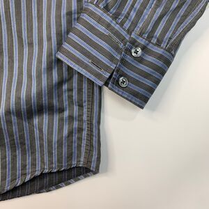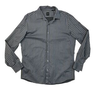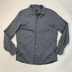 Hugo Boss Shirt Mens L Large Grey Striped Cotton Long Sleeve Spread Collar Dress