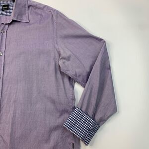 HUGO BOSS SHIRT MENS L LARGE LAVENDER BUTTON UP LONG SLEEVE COTTON REGULAR FIT
