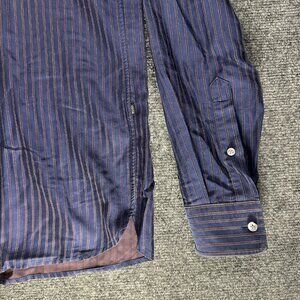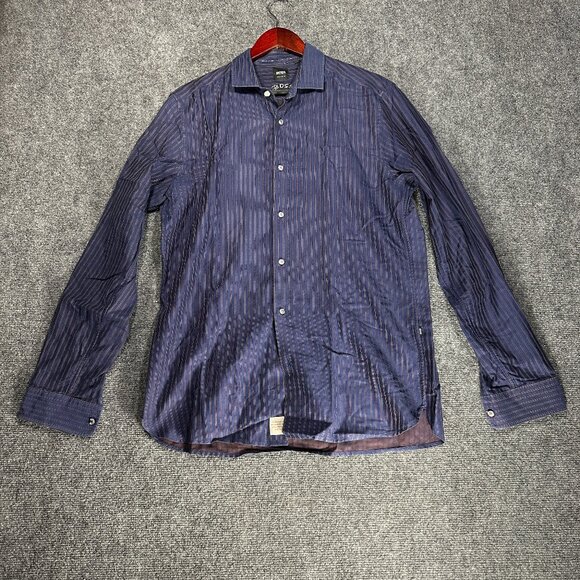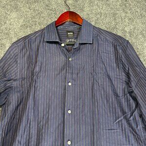Hugo Boss Shirt Mens Medium Blue Stripe Cotton Button Up Long Sleeve