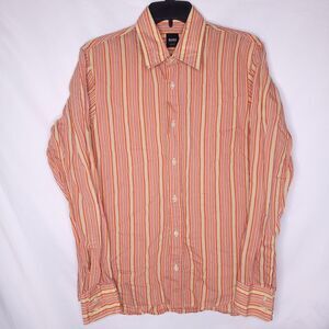 Hugo Boss Shirt Mens Medium Striped Orange Slim Fit