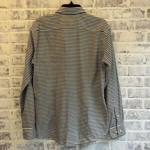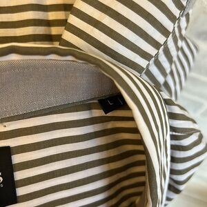 Hugo Boss Shirt Mens Sz Large Olive Green White Striped Business Casual Slim Fit