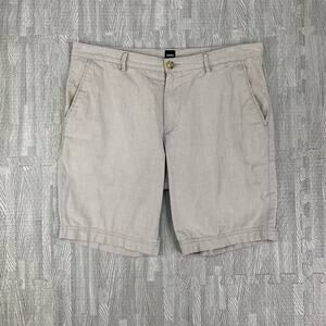 Hugo Boss Shorts Mens 34 Khaki Cotton Stretch Flat Front 9 in Inseam Chino Golf