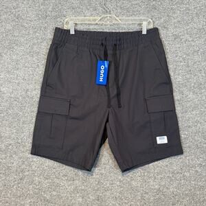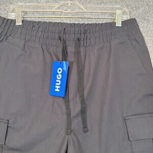 Hugo Boss Shorts Mens Medium Black Cargo Shorts Stretch Waist OVERSIZED New