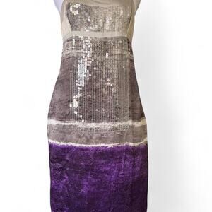 Hugo Boss Silk Sequin Cocktail Dress Purple Silver Party Evening 90s Y2K