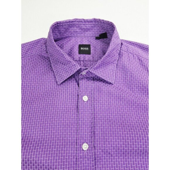 Hugo Boss Size 2XL Mens Purple White Pattern Long Sleeve Logo Tag Cotton Shirt