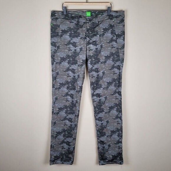 Hugo Boss Size 40 Leeman Slim Fit Digi Camo Performance Stretch Pants Black Gray