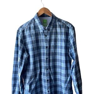 Hugo Boss Size XL Modern Blue Plaid Long Sleeve Button Front Shirt