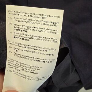 The product is a navy blue skirt by HUGO BOSS in size 12, with a short length and lined pockets featuring zip closure and button accents. Made from a blend of polyester and cotton, this mini skirt is designed for regular size women who appreciate a stylish and versatile addition to their wardrobe. The solid pattern and classic accents make it a timeless piece that can be dressed up or down for any occasion.