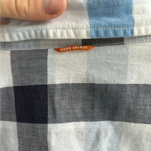 Hugo Boss men’s slim fit flannel print button up shirt. Size XL.
