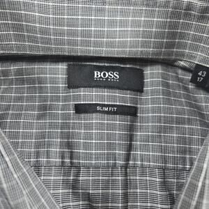 Hugo Boss Slim Fit Smoke Black Plaid Long Sleeve Button Up Shirt Men's Size 17
