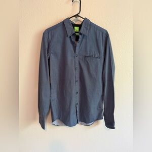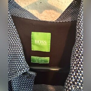Hugo Boss Slim Fit Stretch Button Down Dress Shirt Medium Navy and White