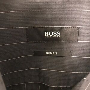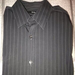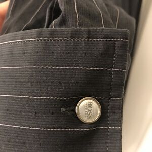 Black with white pinstriping, silver Hugo Boss cufflinks included