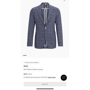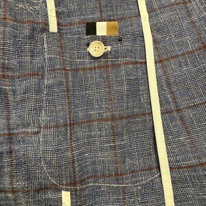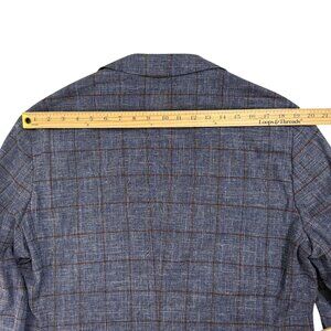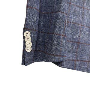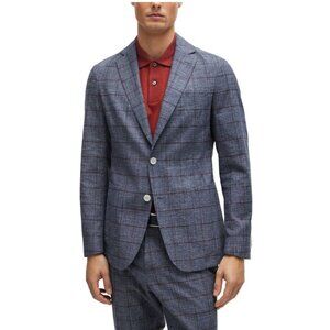 Hugo Boss Slim-Fit Micro-Patterned Jacket Blue Checkered Linen Cotton Blend Sz L
