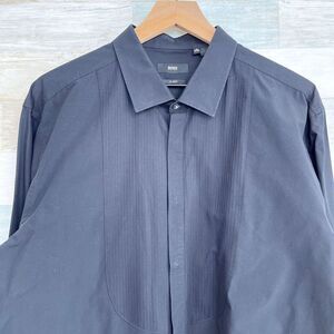 Hugo Boss Spread Collar Bib Front Dress Shirt Black Solid Slim Fit Mens 18 34 35