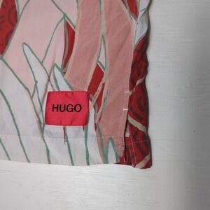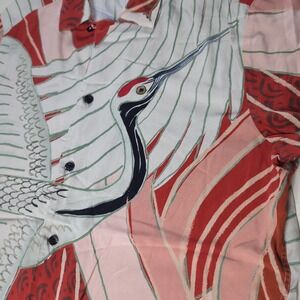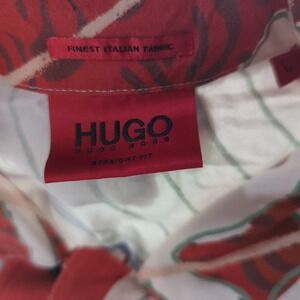 Hugo Boss Straight Fit Red Mens L Short Sleeve Japanese Crane Shirt Italian