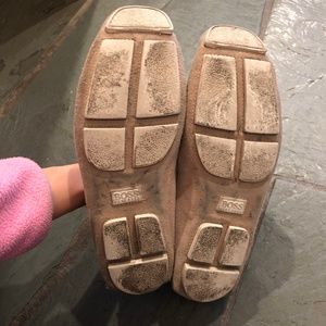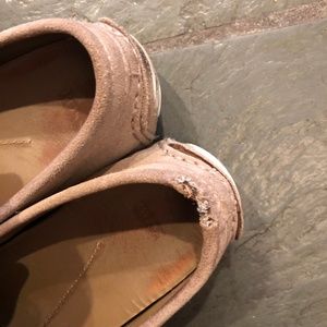 In good used condition. Stain on the side and back. Ripped on the back of left shoe because of my pupppy (shown in the last 2 pictures). Price reflects the condition.