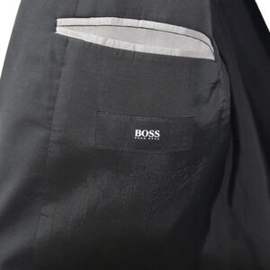 Hugo Boss Suit Top Coat 100% Virgin Wool Made in USA Size 46 R Black Career