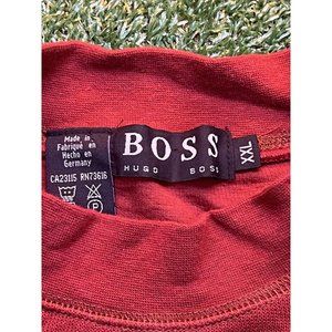 Hugo Boss Sweater Mens 2XL XXL Red Maroon Cotton Solid Knit Slim Crew Pullover