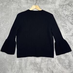 Hugo Boss Sweater Womens Medium Black Made in Italy Ribbed Wool Bell Sleeve
