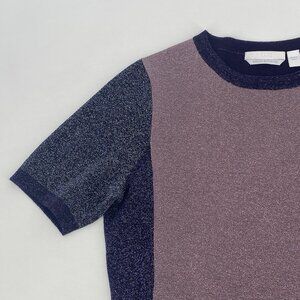 Hugo Boss Sz M Purple Merino Superfine Wool Sweater Top Lurex Sparkle Colorblock