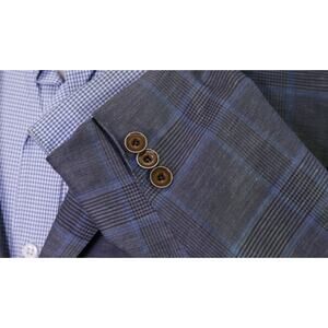 Hugo Boss Tailored Blue Plaid Linen Silk Sportcoat Blazer Current Piacenza 40R