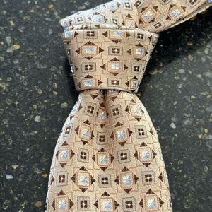 Excellent condition and near new Hugo Boss Tan Silk Tie. No stains or damage at all. Very sharp. From smoke free pet free home. Measurements: