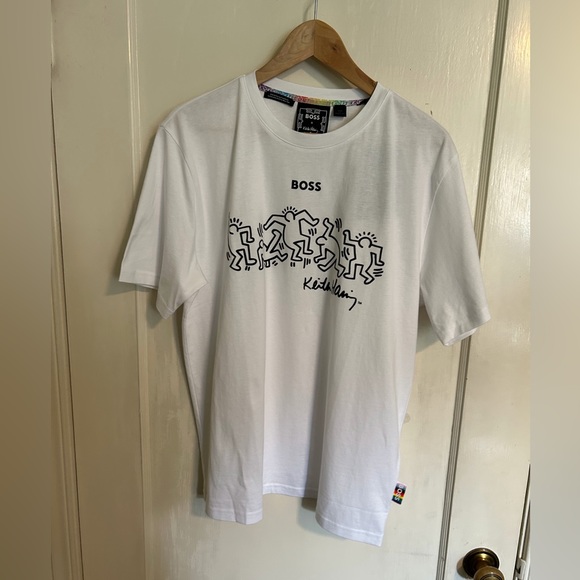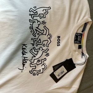 Hugo Boss X Keith Haring Tee: regular fit tee made with pure cotton jersey with special artwork and branding at the chest by BOSS. A limited gender-neutral capsule featuring the work of Keith Haring. 100% Cotton.