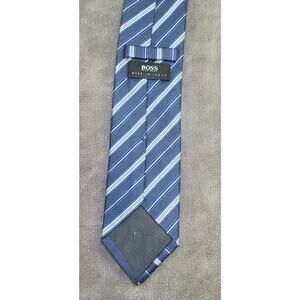 Hugo Boss Tie Men's Blue Stripe 100% Silk Necktie Luxury Made In Italy C24-9